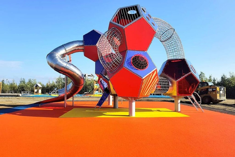 Авторская большая детская площадка. Наша работа – отдельные панели для игрового комплекса. Мы изготовили каркасы панелей и установили тросовые сетки.