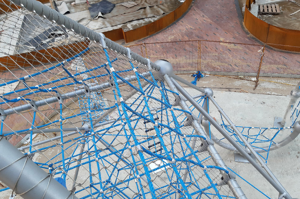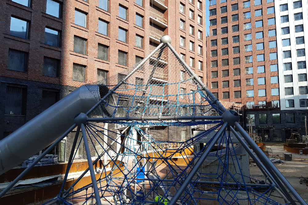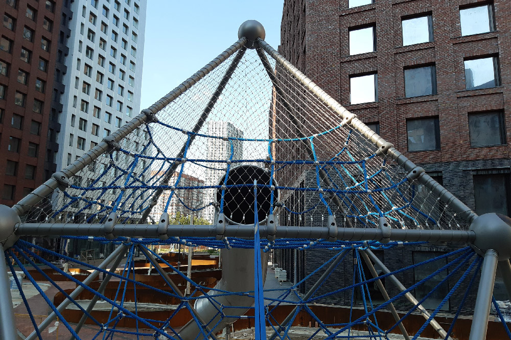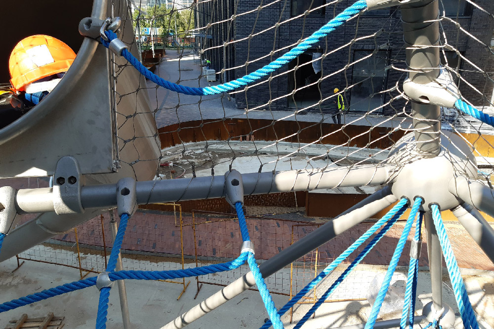 С защитными ограждениями для детских игровых комплексов мы работаем с самого начала производства тросовых сеток. В этом проекте мы произвели доработку детского игрового комплекса. По требованиям специалистов по безопасности детского игрового оборудования наша компания разработала и изготовила сетчатые полотнища, которые закрыли потенциально опасные выходы и проемы.