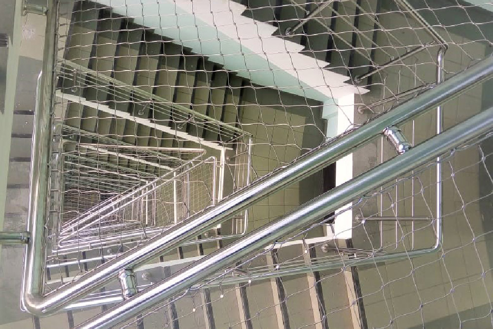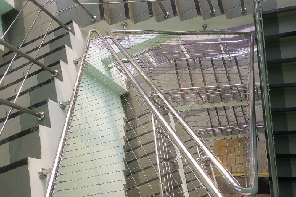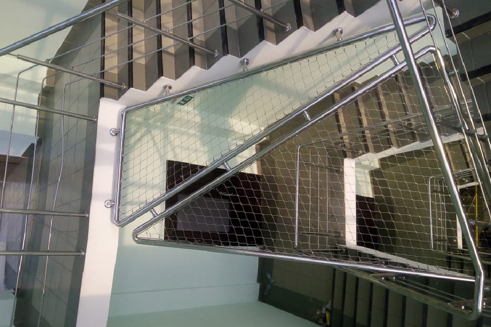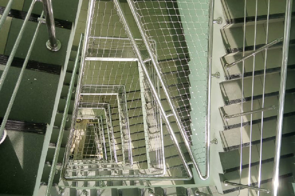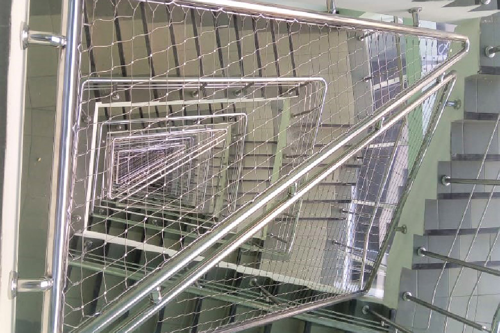 Из большого полотна были вырезаны треугольные полотна в размер рам, были установлены концевые элементы, после чего сетки были натянуты и зафиксированы.