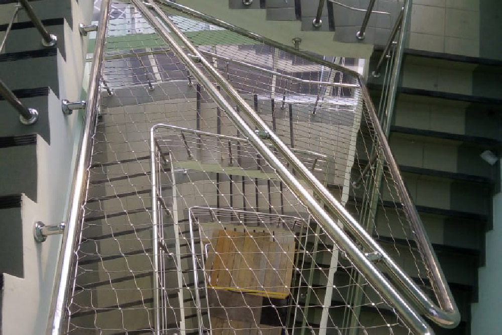 Комплексная работа. Заказчику мы изготовили и передали формованный нержавеющий пруток, который в процессе изготовления рам был приварен на внутренней поверхности. Рамы были доставлены нам в цех, после чего начался процесс кройки и установки сеток.